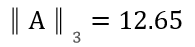 일견 식만 보았을 때는 상당히 복잡해 보이지만, 따지고 보면 1-norm과 2-norm만큼 간단하다. 예를 들어 p =3 인 3-norm의 경우, 모든 원소를 세제곱 한 것을 더한 후 이에 세제곱근을 씌우면 된다. 실제로 행렬 A의 p - norm (p =3)을 구해보면, 다음과 같다.