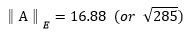 행렬 A의 경우, 1^2 + 2^2 + ~ + 9^2 = 285의 루트값인 16.88이 A의 2-norm일 것이다.