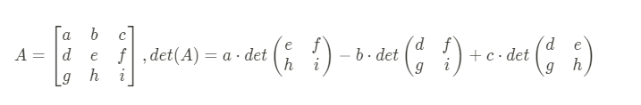 하지만 이 식은 3X3 이상의 행렬 부터는 굉장히 복잡해지기 시작한다. 아래에 해당 공식을 가져다 놓았지만, 어차피 우리는 MATLAB을 사용하기 때문에 굳이 외울 필요는 없다.
