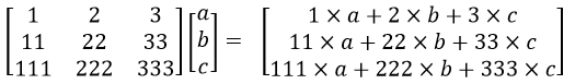 조금 복잡한 좌변을 계산해보면, A의 각 행(가로줄)마다의 원소 각각 해당하는 x값을 곱해주면 된다. 위 그림은 복잡하니 3x3 정방행렬을 예시로 들어보면,