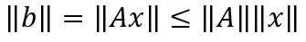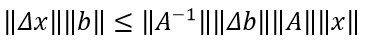 이제 norm의 특성을 활용할 차례이다. 가장 처음의 식을 통해 b와 x의 크기에 대한 관계식을 지을 수 있고, 바로 위의 식을 통해 오차의 크기를 정리할 수 있다. 이 때 어떤 norm을 쓰는지는 관계 없다.