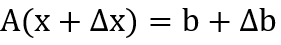 전에 eigenvector를 알고 있던 사람이라면 상당히 익숙한 식이겠다. 이 식에서A : 행렬x : 벡터(식의 해)b : 벡터이다. 이 때 약간의 오차가 발생하여 벡터 b가 b+Δb로 변하면, 이 식의 해인 x 또한 x+Δx로 변한다.