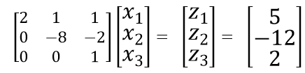 z1 = 5임이 바로 나오기 때문에 z2= -12, z3=2 또한 바로 계산된다. 이제 앞서 z로 합쳤던 값들도 풀 수 있다.