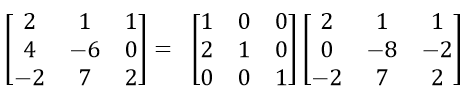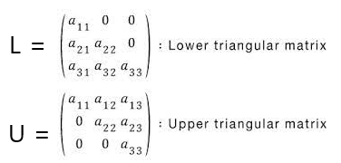 아래와 같은 연립방정식은, LU decomposition을 통해 그 아래로 분해된다.
