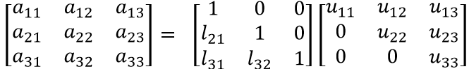 아래와 같은 연립방정식은, LU decomposition을 통해 그 아래로 분해된다.