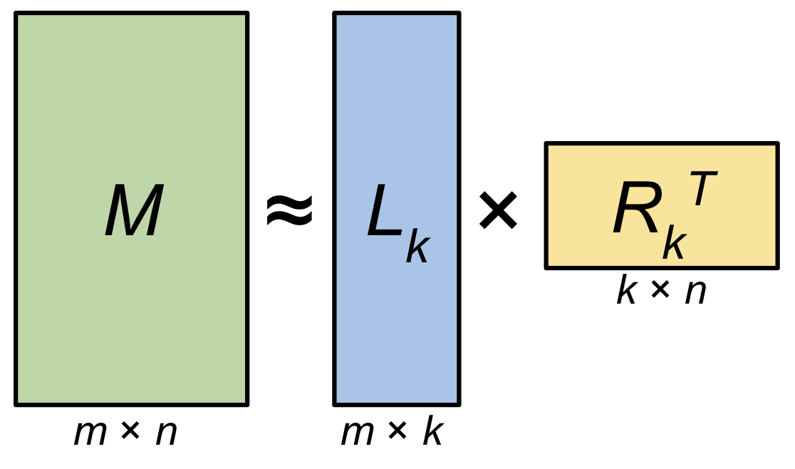 matrix decompostion은 "분해"라는 번역명에 걸맞게 행렬 하나를 여러 작은 행렬의 곱으로 나타내는 것을 의미한다.