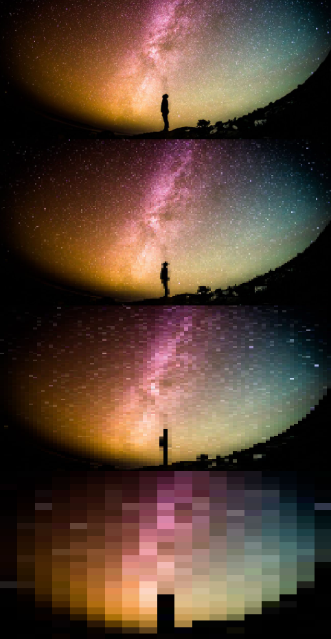 위의 사진들에서 볼 수 있듯이, 원본을 압축할수록 용량이 줄어들기도 하지만 정보가 손실된다.