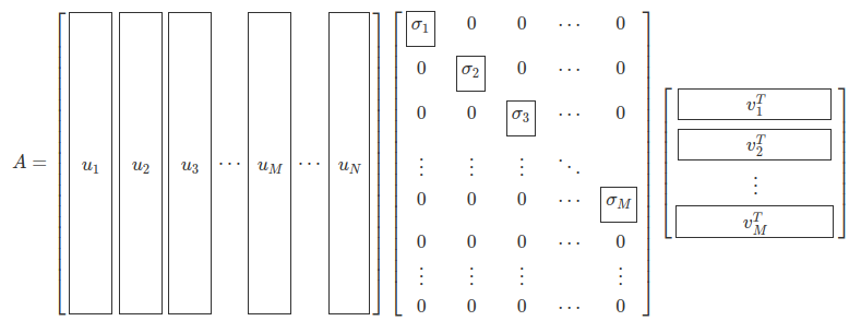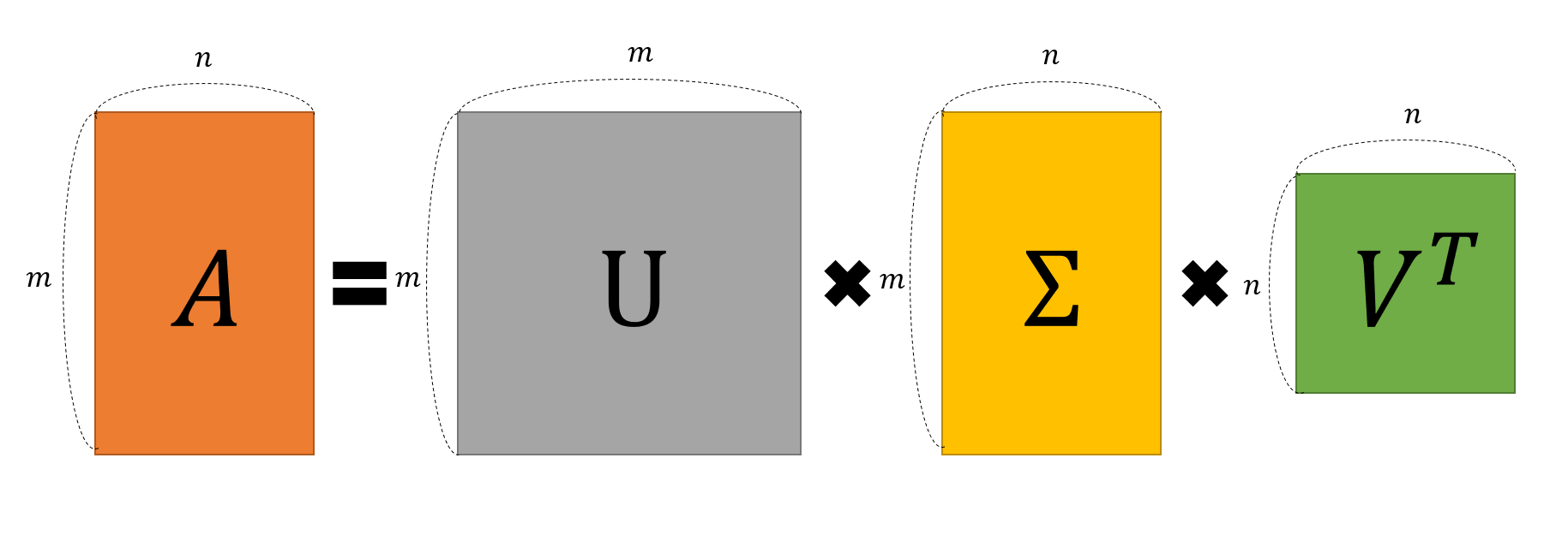 SVD(Singular Value Decomposition, 특이값 분해)는 어떤 행렬(A)을 두 정방행렬(U,V^T)과 한 대각행렬(∑)로 분해하는 과정을 의미한다.