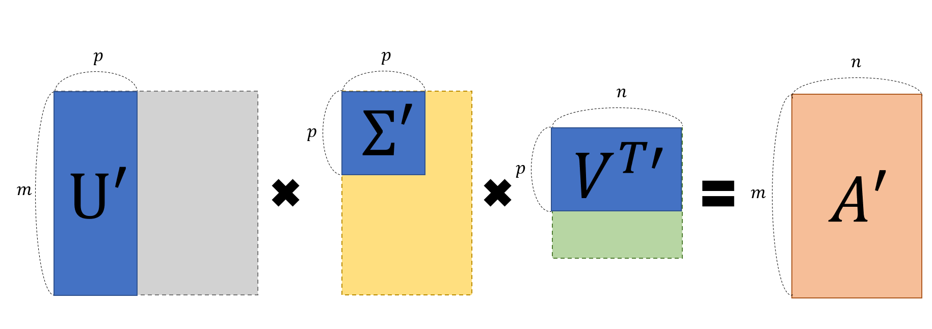 이러한 SVD는 행렬의 차원을 축소하는데 많이 사용된다. 무슨 소리인가 하면, 행렬의 크기는 그대로 두면서 담고 싶은 정보만 압축하여 보존할 수 있다는 의미이다. 아래의 그림을 보자.