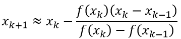식에서 볼 수 있듯이 secant method는 과거의(k-1번째) 값도 필요로 하기 때문에, 첫번째와 두번째 값까지는 직접 계산하여 넣어주어야 한다는 단점이 존재한다.
