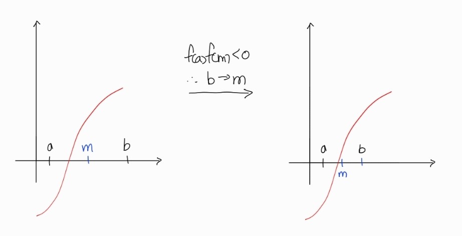 f(a) f(m)>0 일 때, a가 m이 된다. 0보다 작다면 b가 m이 된다.